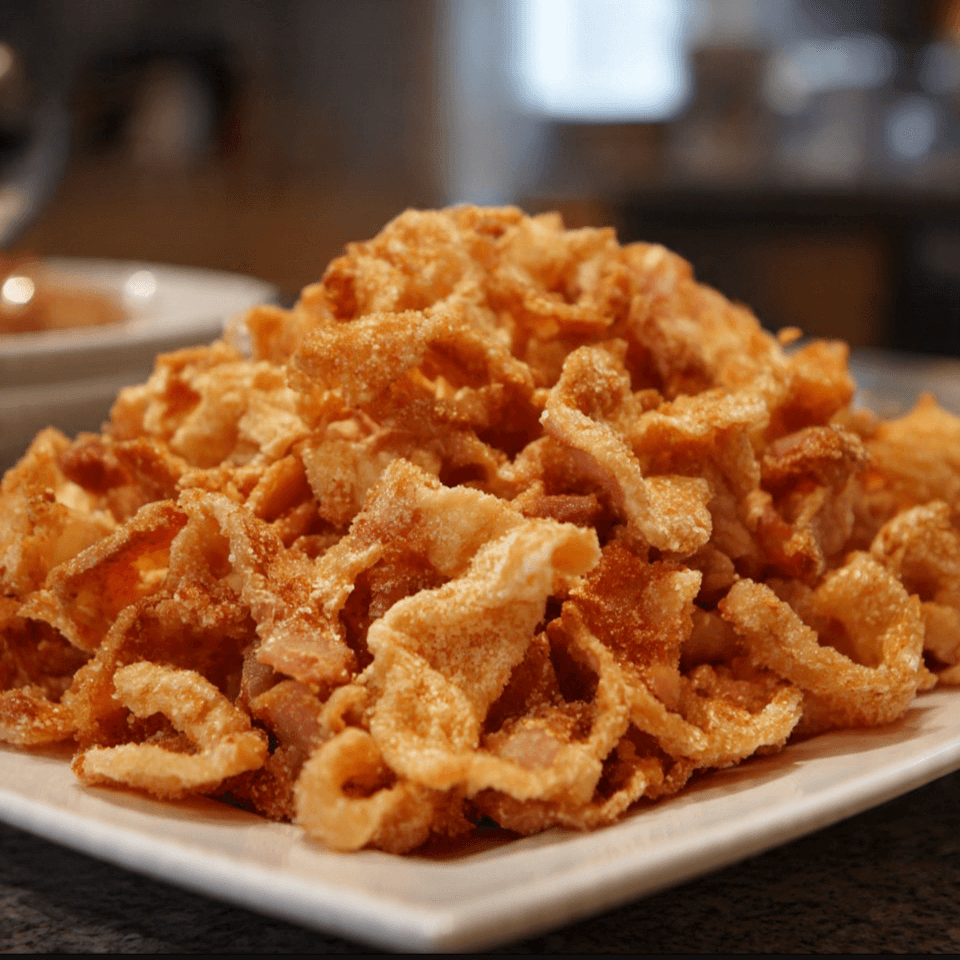 Full platter of freshly fried pork skins served with dipping sauce