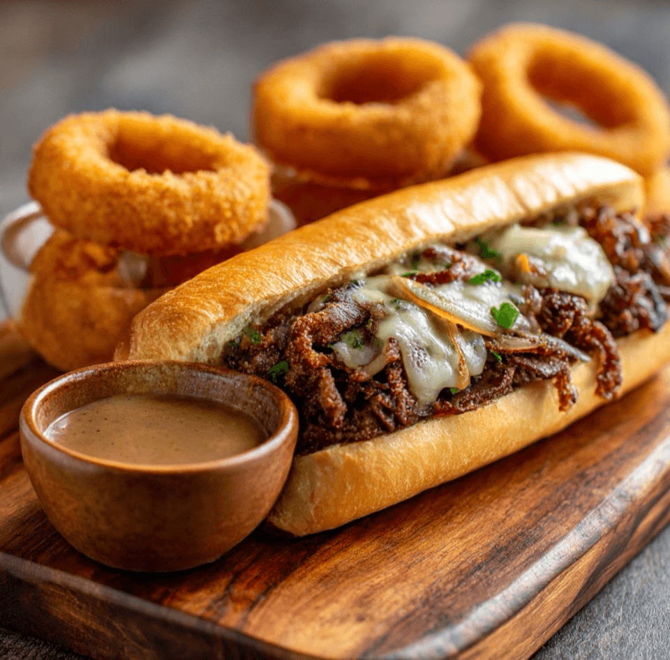 Thinly sliced steak with green peppers & onions topped with your choice of mozzarella, american, swiss, or our signature cheese sauce